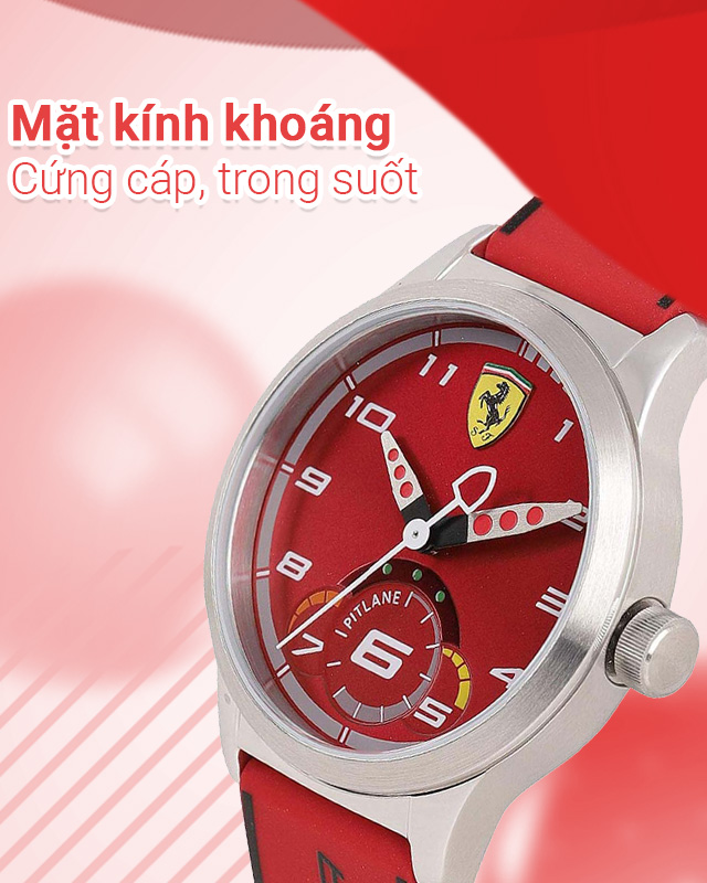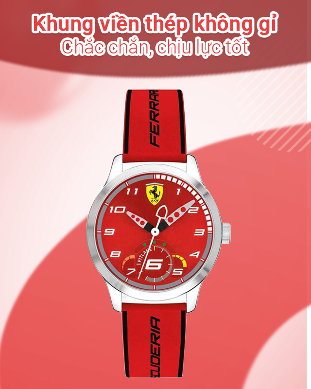 - Thiết kế năng động với tông đỏ nổi bật đến từ thương hiệu đồng hồ Ferrari uy tín và chất lượng của Ý