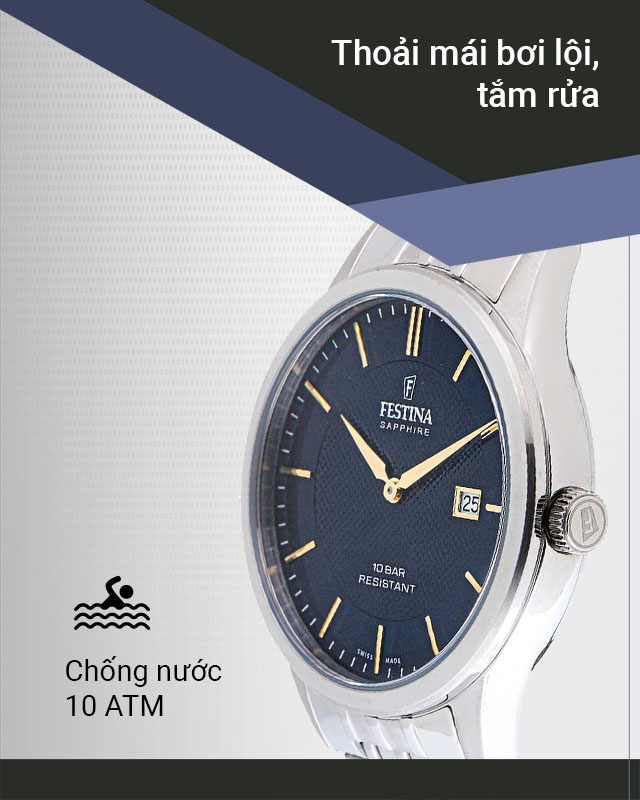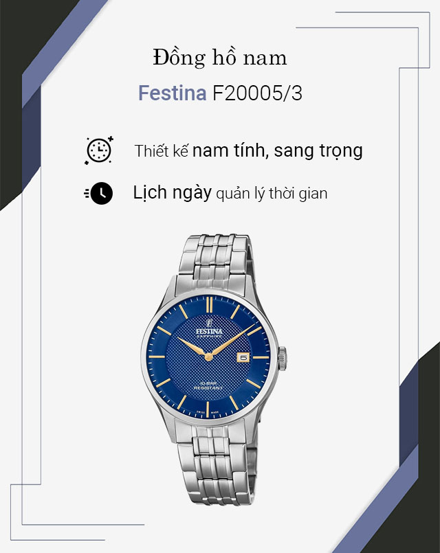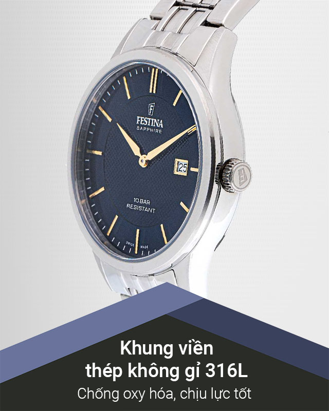 - Mẫu đồng hồ nam gây ấn tượng với vẻ ngoài sang trọng, lịch lãm đến từ thương hiệu Festina của Thụy Sĩ
