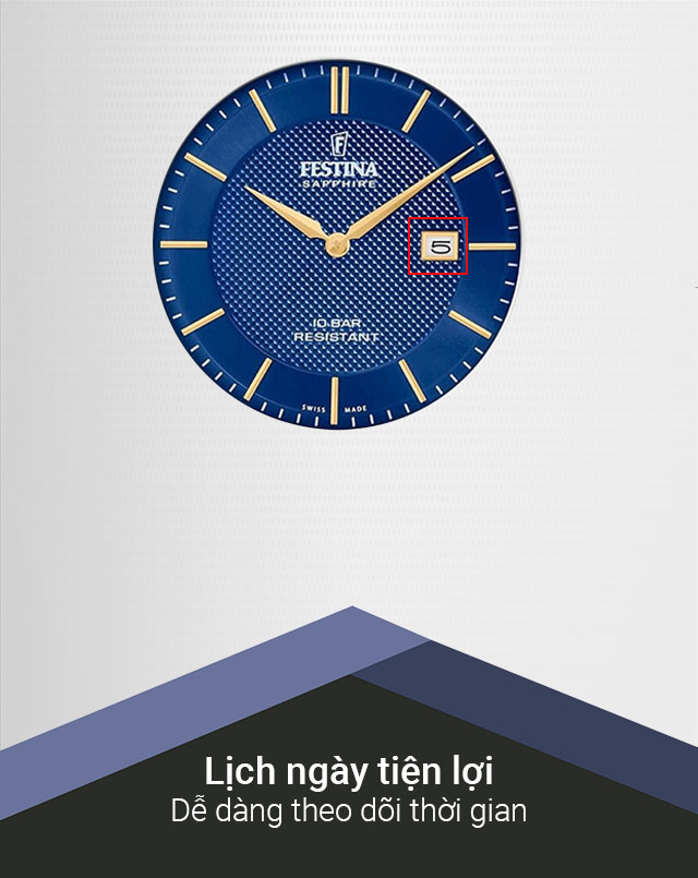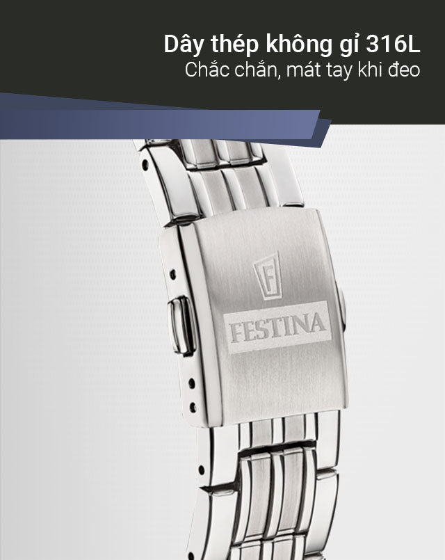 - Chiếc đồng hồ Festina này được trang bị thêm mặt lịch ngày tiện lợi