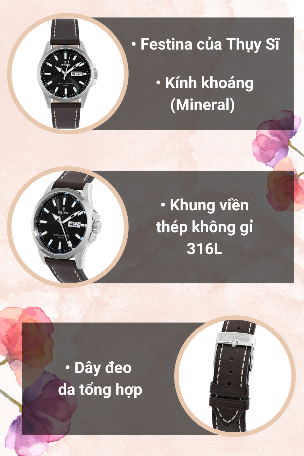 - Thương hiệu đồng hồ Festina nổi tiếng đến từ Thụy Sĩ được nhiều quý ông ưa chuộng