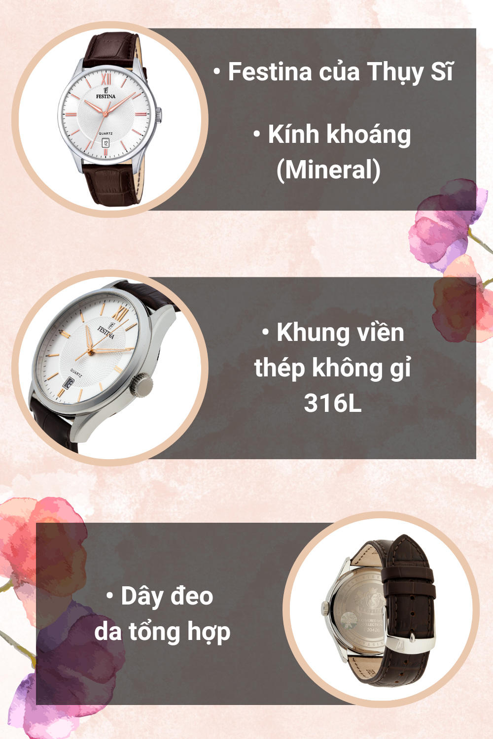 - Festina là thương hiệu chuyên về đồng hồ, đồng hồ Festina ghi dấu ấn trong lòng khách hàng nhờ sự tuyệt hảo, sự đa dạng về mẫu mã.