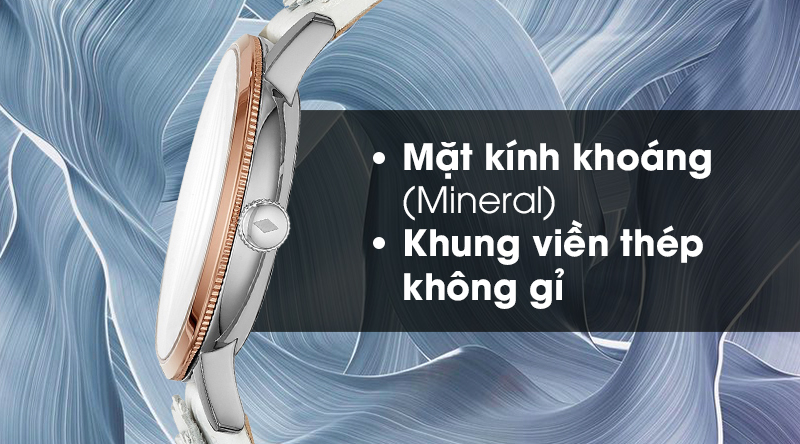 - Mặt kính đồng hồ nữ có độ cứng khá, độ trong suốt cao, không lóa mắt khi xem giờ dưới nắng.