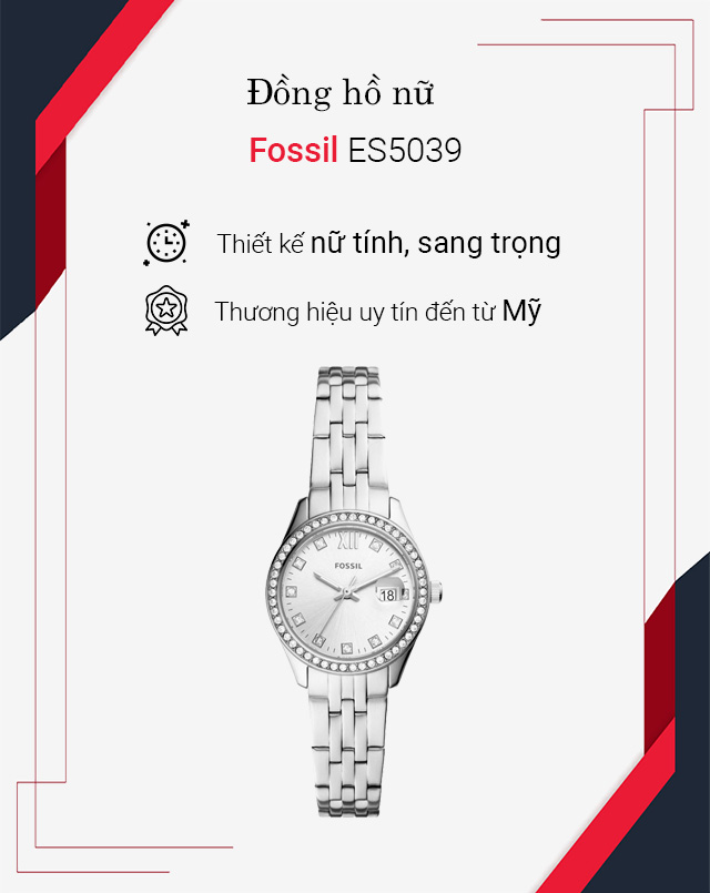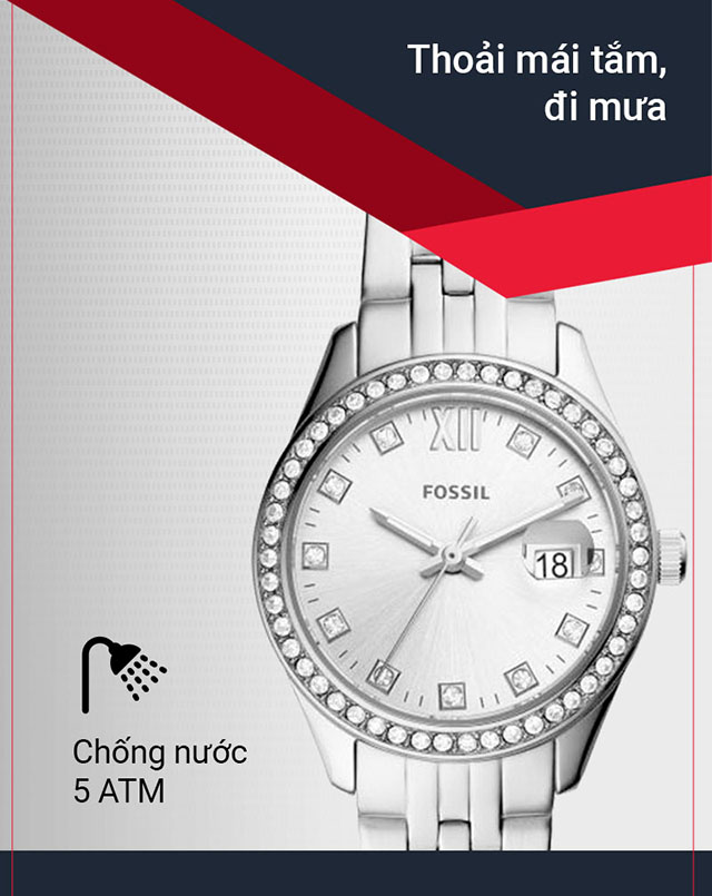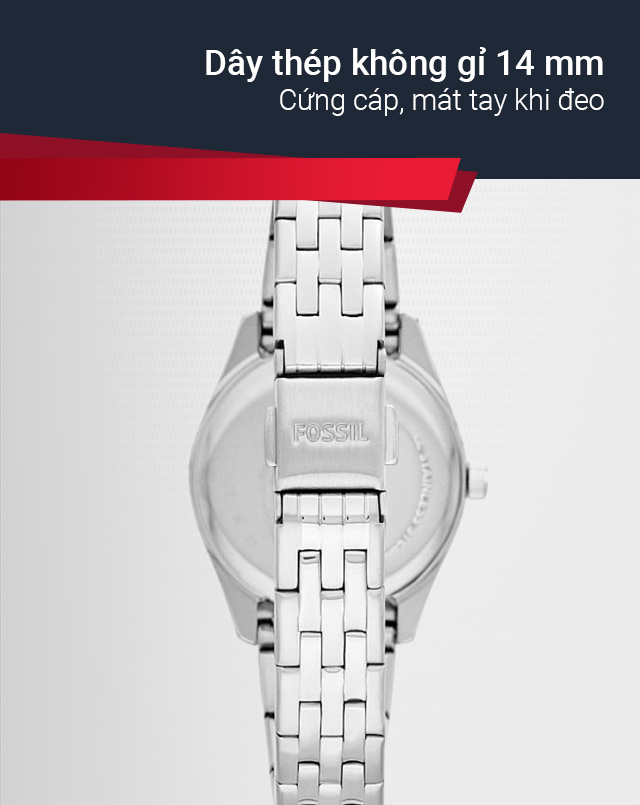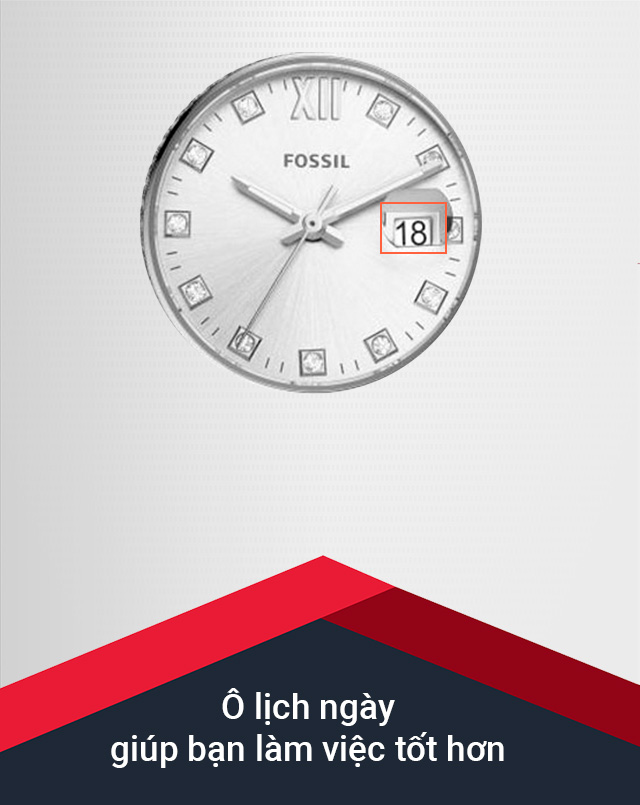 - Sở hữu tông màu bạc nhẹ nhàng nhưng chưa bao giờ lỗi thời, đến từ hãng đồng hồ Fossil nổi tiếng của Mỹ