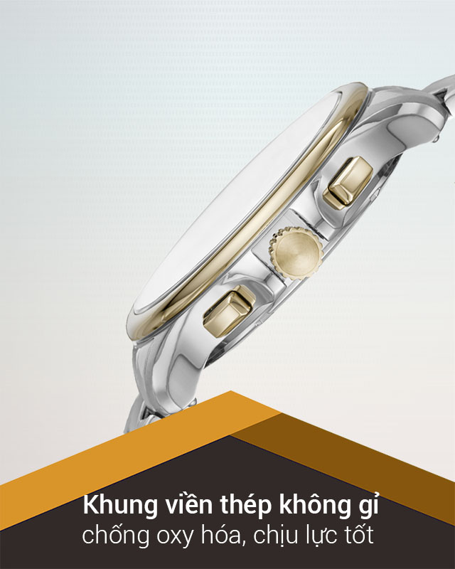 - Dây đeo và khung viền thép không gỉ có độ bền cao, chống ăn mòn hiệu quả, cho cảm giác mát tay khi mang