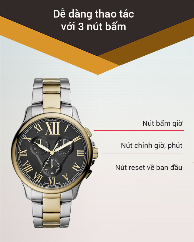 - Đồng hồ được tích hợp chức năng bấm giờ thể thao hay còn gọi là bấm giờ (Chronograph) và đồng hồ định dạng 24 giờ rất hữu ích