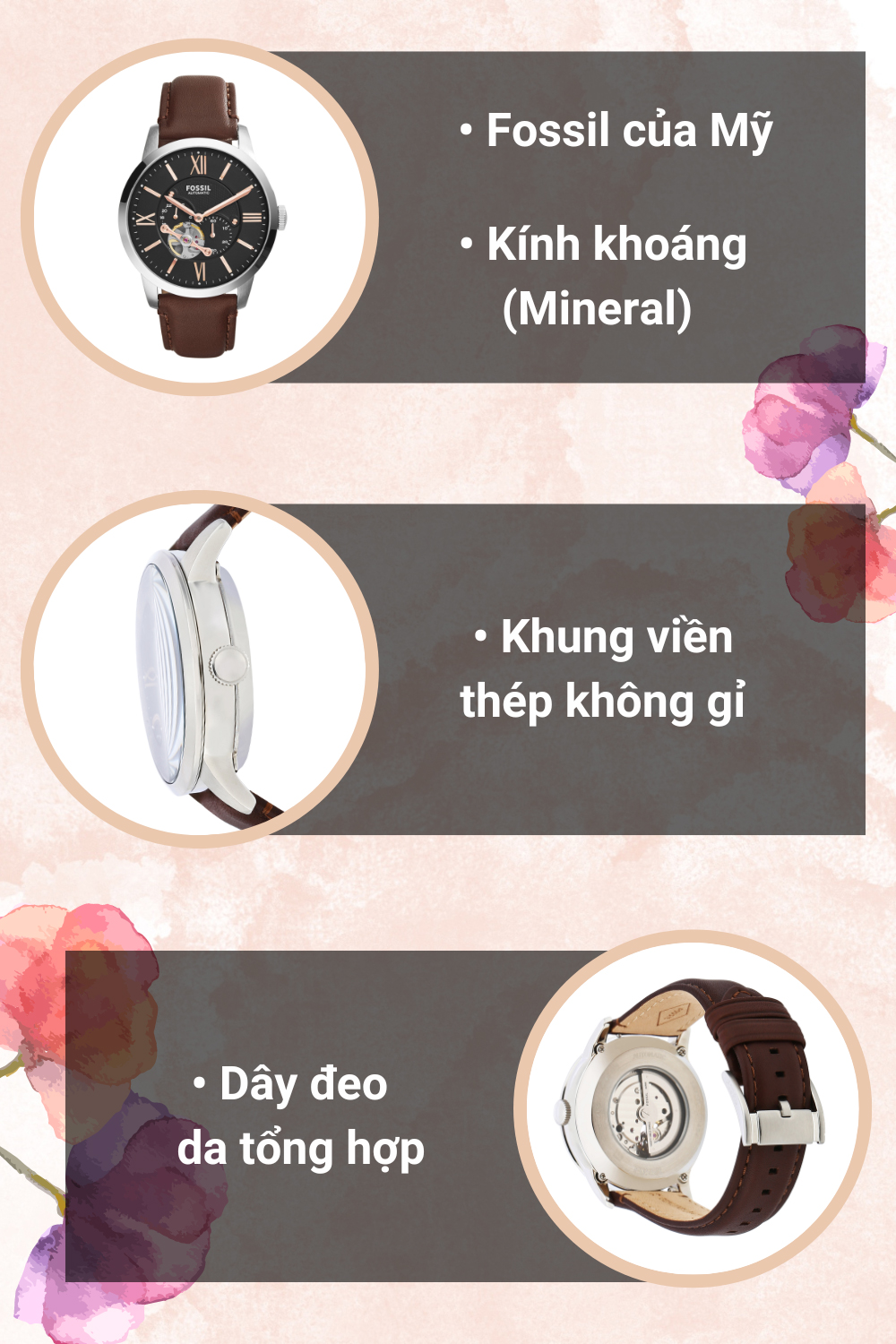- Thương hiệu đồng hồ Fossil uy tín và chất lượng của Mỹ, được nhiều người Việt Nam tin dùng. Với những thiết kế tinh tế đi cùng chất lượng bền bỉ theo thời gian đây chính là triết lý của thương hiệu này.