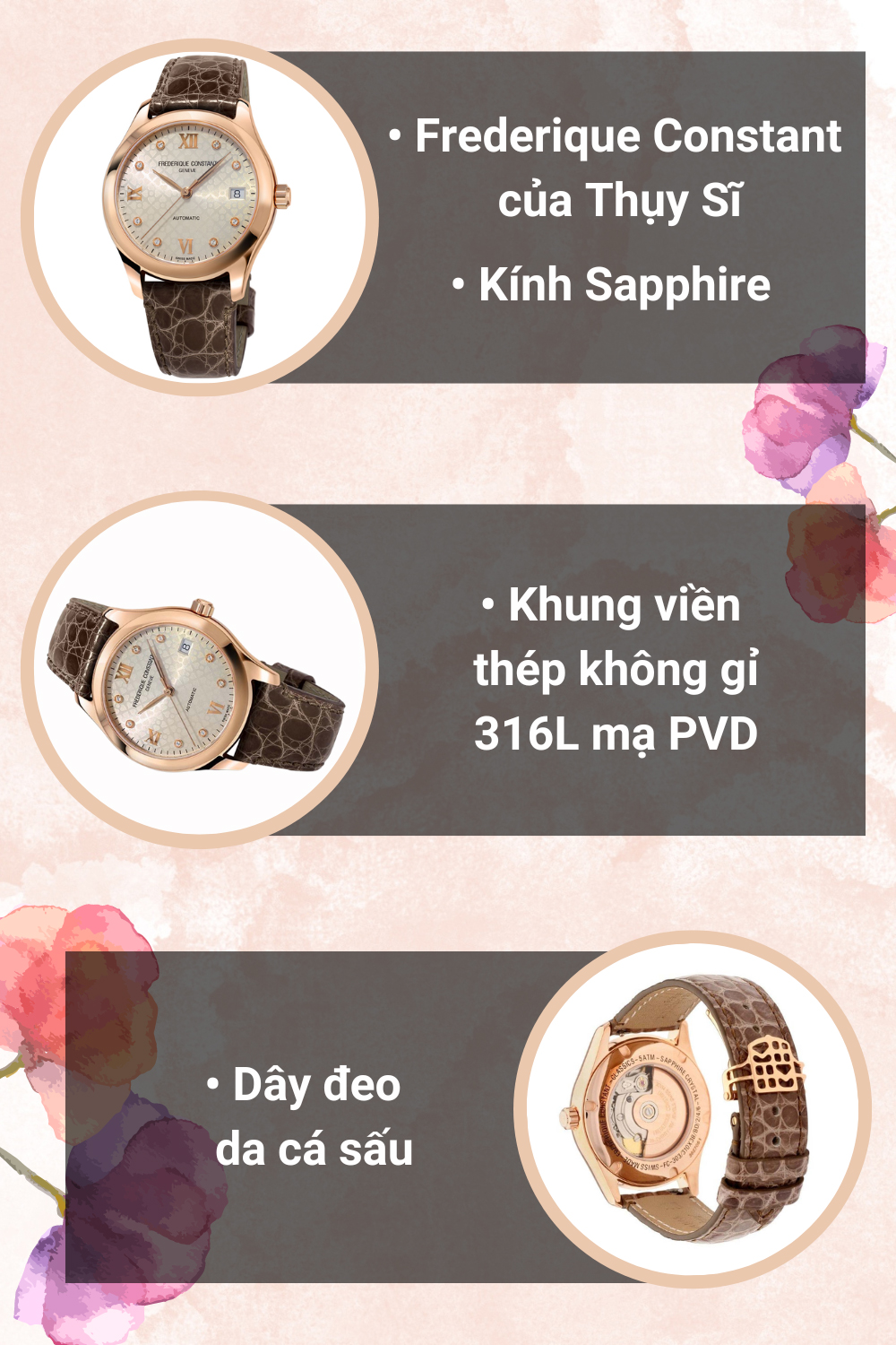 - Một sản phẩm đến từ hãng đồng hồ Frederique Constant - Thụy Sĩ, gây ấn tượng với kiểu dáng sang trọng và quý phái
