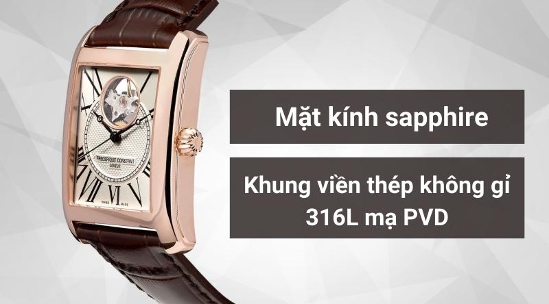 - Ấn tượng bởi vẻ ngoài độc đáo và thiết kế lộ máy đến từ thương hiệu đồng hồ Frederique Constant uy tín, chất lượng đến từ Thụy Sĩ