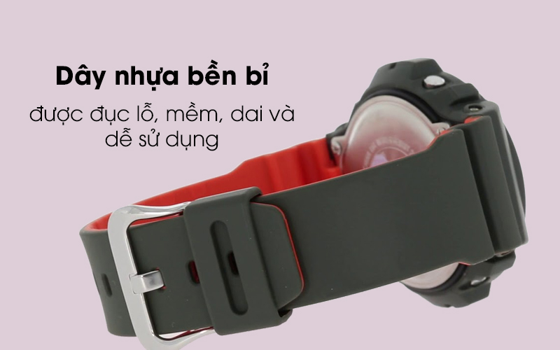 Dây của chiếc đồng hồ G-Shock này bằng nhựa mềm sang trọng. Chất liệu nhựa mang đến sự trẻ trung, năng động. Thân dây có nấc giúp bạn dễ dàng điều chỉnh theo ý thích. Khóa gài kim loại thời trang dễ dàng sử dụng.