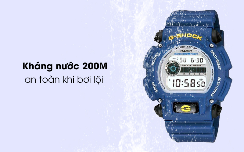 G-shock trang bị cho chiếc đồng hồ quartz này tính năng chống nước ở độ sâu 200m. Bạn là người yêu thích thể thao dưới nước? Chiếc đồng hồ này có thể đồng hành cùng bạn trong trò lướt ván, bơi, trượt nước,...hay lặn ở sông.