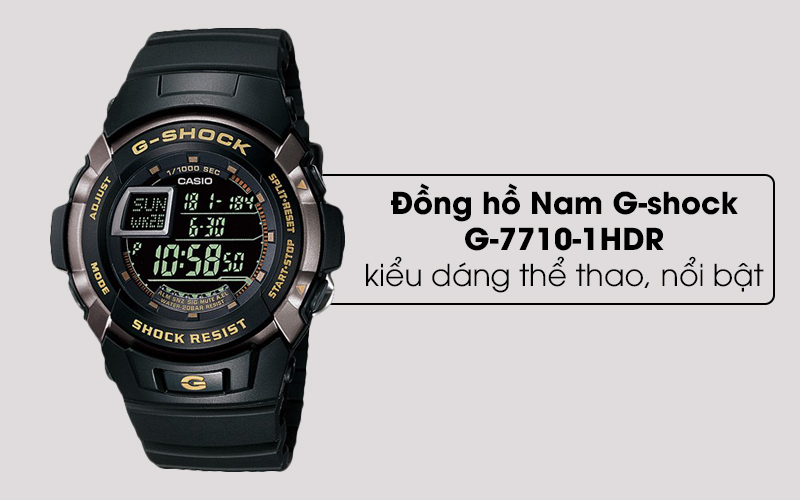Đồng hồ nam G-shock G-7710-1HDR đen được thiết kế khá giống với người anh em G-7700-1HDR của mình, với thiết kế thể thao, góc cạnh, màn hình hiển thị nhiều thông tin, góc trái màn hình là một cửa sổ nhỏ có viền kim loại mang lại điểm nhấn cho đồng hồ.