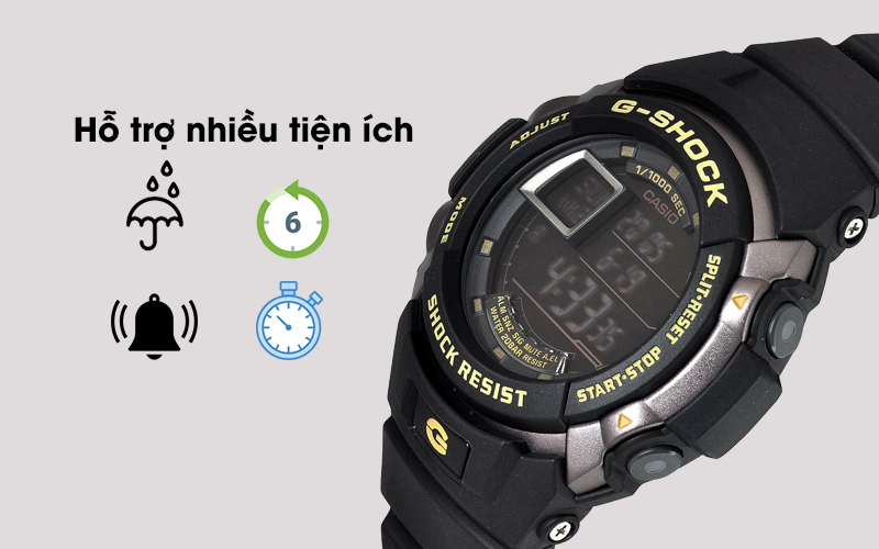 Mẫu đồng hồ G-Shock này có màn hình hiển thị nhiều thông tin và còn có những tiện ích như báo thức, đồng hồ bấm giờ, đồng hồ đếm ngược..., được mở khi thao tác trên các nút một cách dễ dàng. Hỗ trợ cho các bạn trẻ tối đa trong quản lý thời gian.