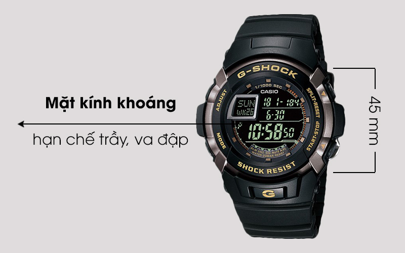 Nhà sản xuất đã trang bị cho đồng hồ G-Shock nam mặt kính khoáng bền bỉ giúp mặt đồng hồ được hạn chế trầy, va đập, và có độ trong suốt cao trong quá trình sử dụng.