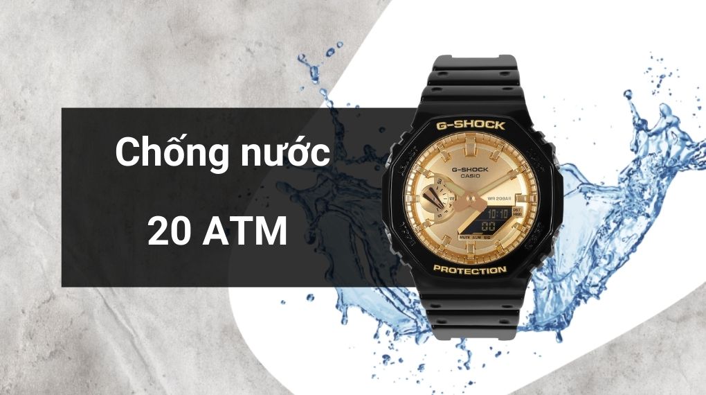 • Đồng hồ có khả năng chống nước đến 20 ATM, cho phép bạn thực hiện các hoạt động liên quan đến nước như bơi lội, lặn biển hoặc các hoạt động thể thao khác. Lưu ý: không nên bấm các nút trong khi trong nước để tránh hỏng đồng hồ.