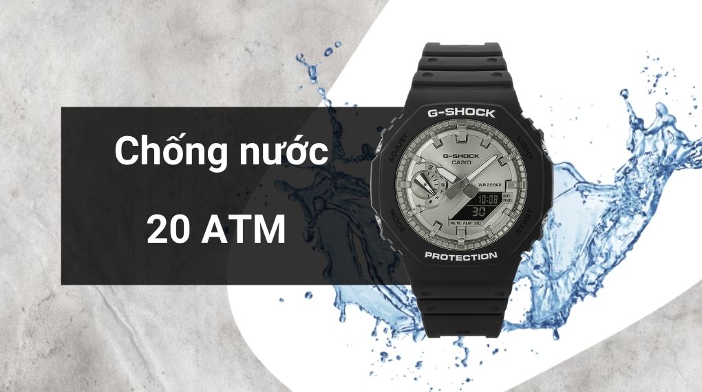 • Hệ số chống nước của đồng hồ là 20 ATM, tương đương với khả năng chịu được các hoạt động liên quan đến nước như bơi lội, lặn, tắm biển, hoặc các hoạt động thể thao liên quan đến nước khác. Lưu ý: không vặn bấm các nút trong quá trình bơi hoặc lặn để tránh trường hợp đáng tiếc.