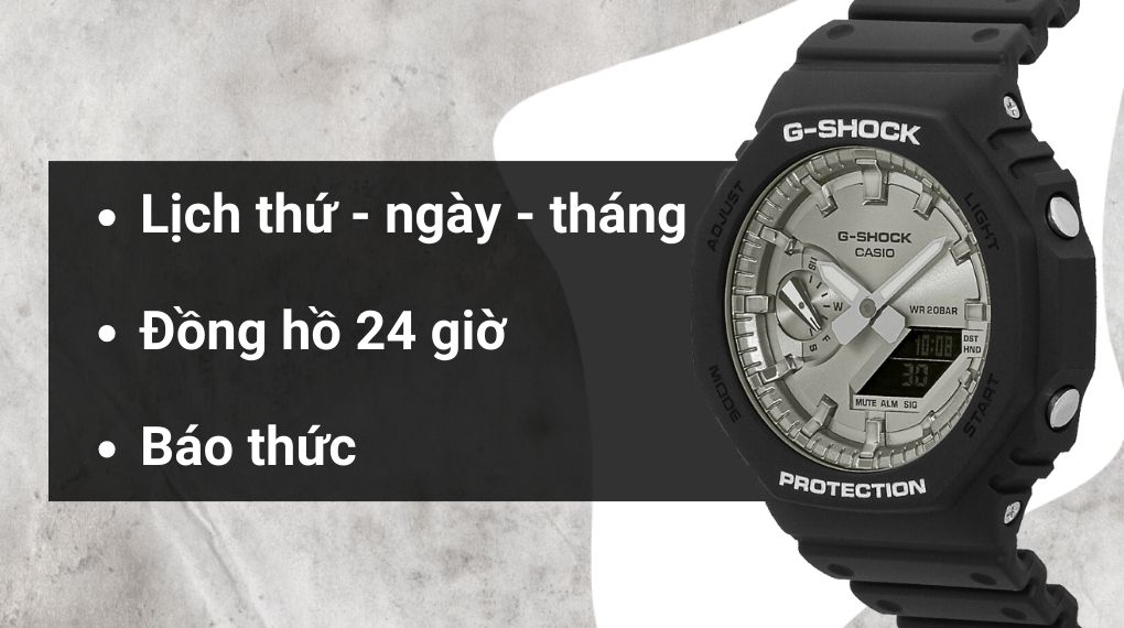 • Đồng hồ G-Shock - thuộc thương hiệu Casio nổi tiếng và uy tín của Nhật Bản. Chiếc đồng hồ này thực sự được xem như là một món thời trang thực thụ vì vẻ ngoài được thiết kế ấn tượng.