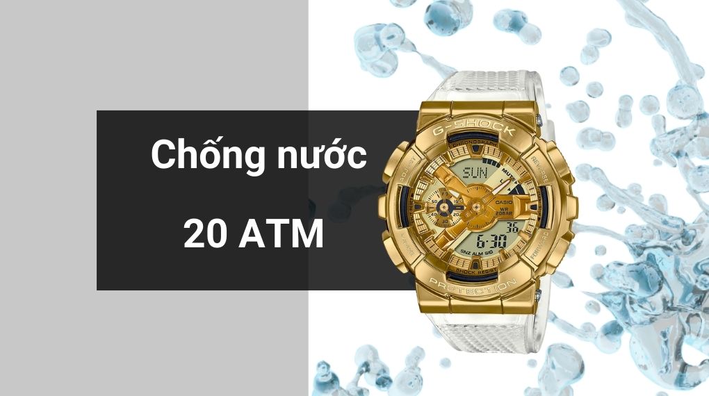 • Hệ số chống nước của đồng hồ là 20 ATM, vì thế mẫu đồng hồ này sở hữu khả năng chịu được các hoạt động liên quan đến nước như khi tắm, bơi lội, lặn hoặc các hoạt động thể thao liên quan đến nước khác. Lưu ý: không vặn bấm các nút trong quá trình bơi hoặc lặn để tránh trường hợp đáng tiếc.