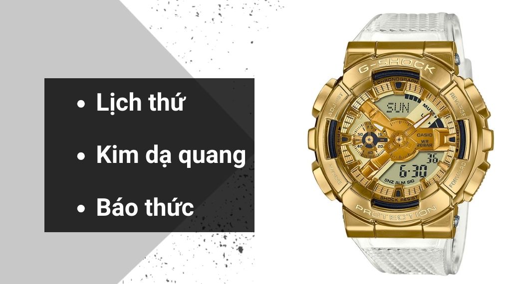 • Đồng hồ G-SHOCK này có đầy đủ tính năng hữu ích như múi giờ thứ 2, âm bấm phím, báo thức, đồng hồ 24 giờ, bấm giờ thể thao, bấm giờ đếm ngược, đèn tự động, đèn LED và kim dạ quang để dễ dàng xem giờ trong điều kiện thiếu sáng lại vừa hỗ trợ bạn tập luyện tốt hơn. Ngoài ra, bạn có thể dễ dàng kiểm soát thời gian với tính năng lịch ngày - thứ và lịch tháng được tích hợp trên sản phẩm.