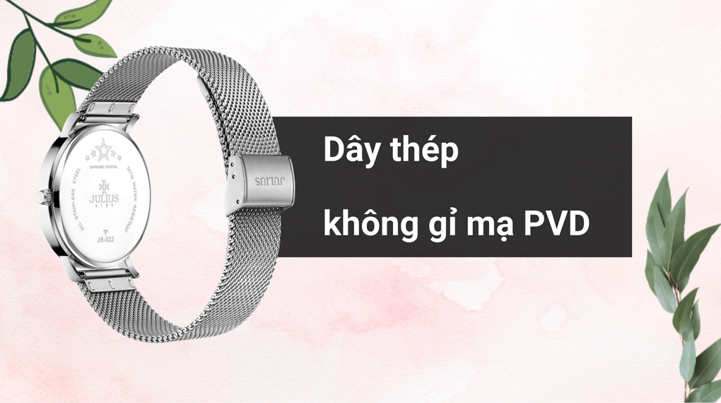 • Khung viền của sản phẩm được chế tạo từ thép không gỉ có bề mặt sáng bóng và khả năng chịu va đập tốt, đồng thời có khả năng hạn chế ăn mòn cao, mang lại sự yên tâm cho người dùng khi sử dụng. Ngoài ra, dây đeo của sản phẩm được sử dụng công nghệ mạ PVD tiên tiến kết hợp với thép không gỉ, giúp tăng độ bóng bẩy và độ bền lên đến 2 hoặc 3 lần so với các đồng hồ thông thường.