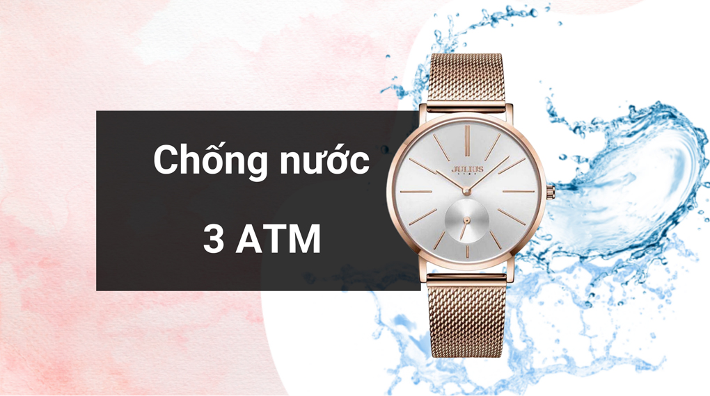 • Đồng hồ nữ này có chỉ số kháng nước 3 ATM, đáp ứng được các tiêu chuẩn về chịu nước khi tiếp xúc với không khí ẩm thường ngày, chịu được nước khi rửa tay hoặc đi mưa nhỏ. Lưu ý: không sử dụng khi đi tắm, đi bơi và đi lặn.