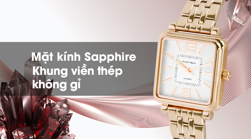 - Mặt kính của chiếc đồng hồ Korlex nữ này có độ cứng cao, độ trong suốt cao, không lóa mắt khi xem giờ dưới nắng.