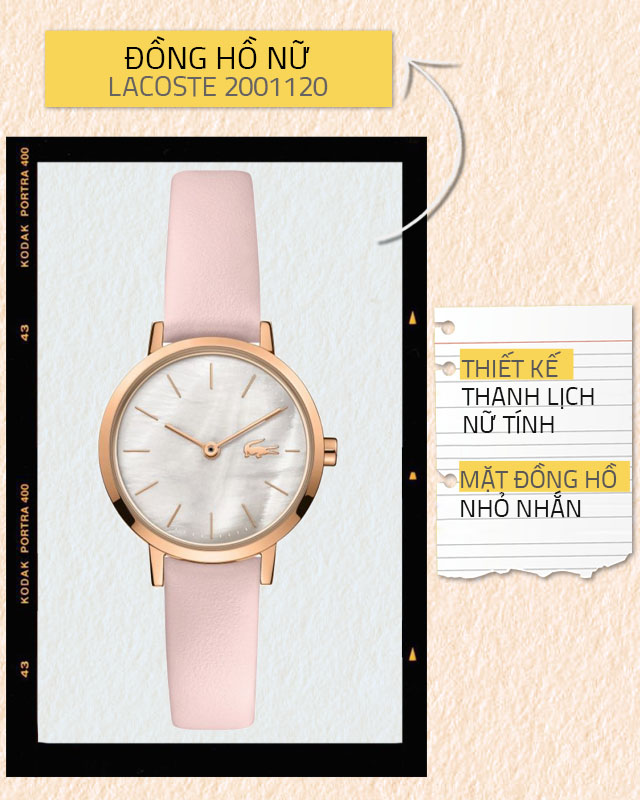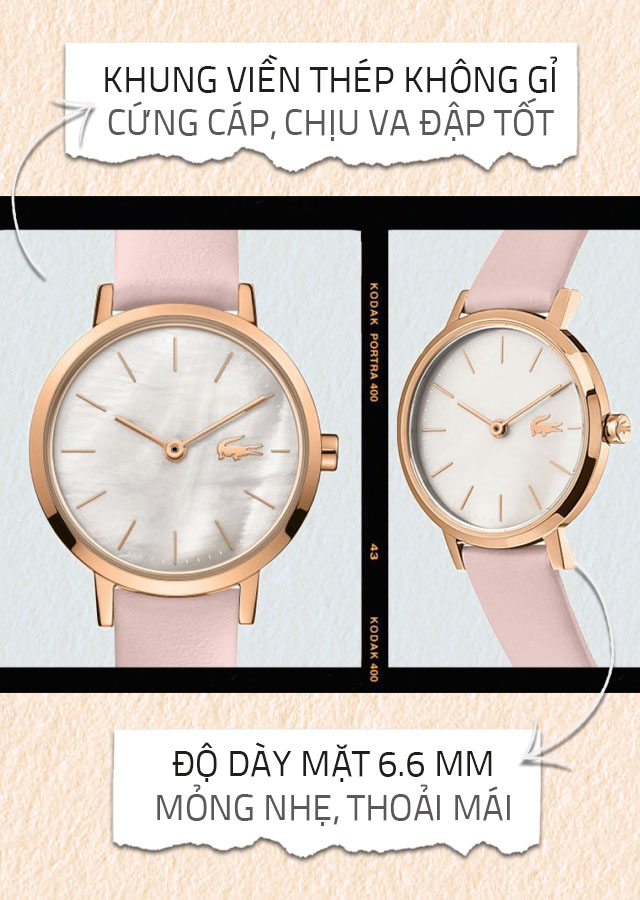 - Đến từ hãng đồng hồ Lacoste, thương hiệu đồng hồ đến từ Pháp, sản phẩm có thiết kế nhỏ gọn, nữ tính