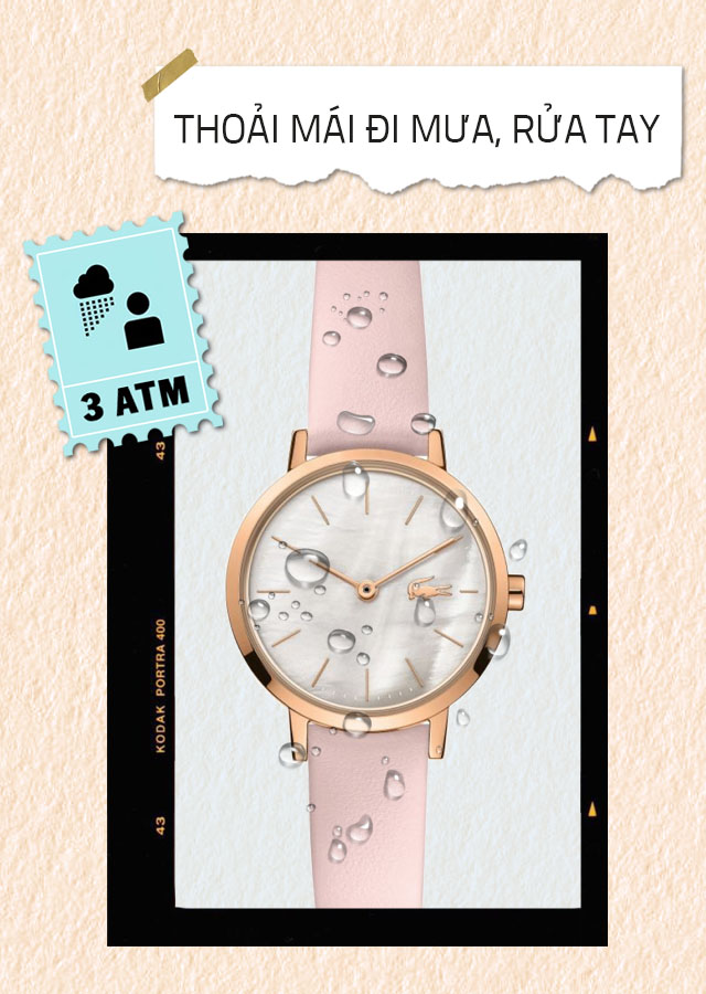 - Hệ số chống nước là 3 ATM nên hoàn toàn an tâm đeo mẫu đồng hồ nữ này khi đi mưa và rửa tay. Tuy nhiên, không nên đeo khi tắm hoặc bơi lội