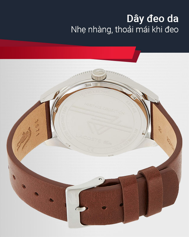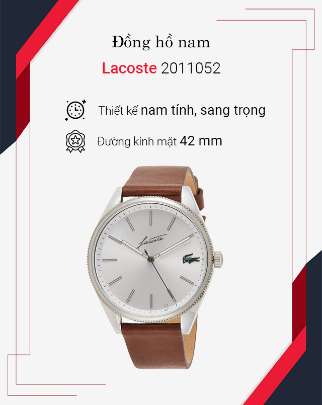 - Đến từ hãng đồng hồ Lacoste, thương hiệu đồng hồ đến từ Pháp, sản phẩm có thiết kế đẹp mắt, nam tính