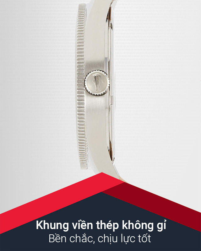 - Khung viền được làm từ thép không gì bền chắc, chống ăn mòn và dây đeo da thoải mái, êm ái khi đeo