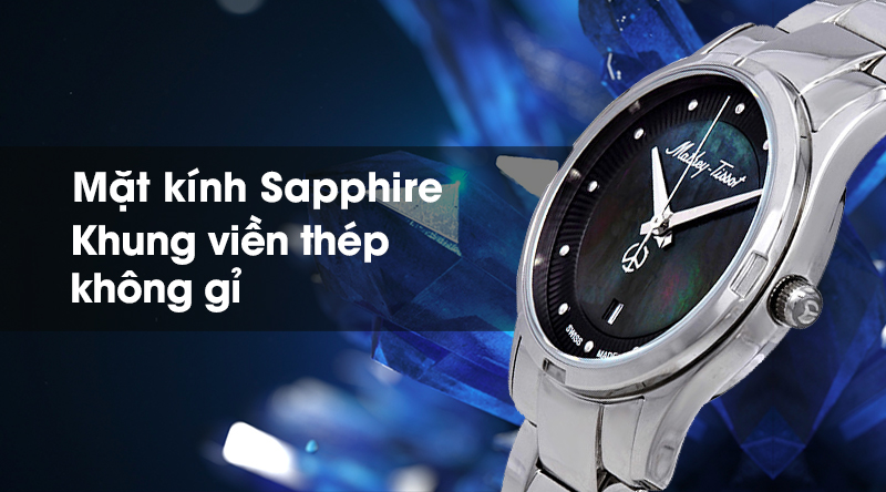 - Chiếc đồng hồ Mathey Tissot nữ này được trang bị khung viền cứng cáp, chịu va đập tốt, hạn chế hư hỏng cho đồng hồ khi có tác động ngoại lực.