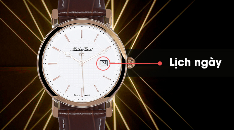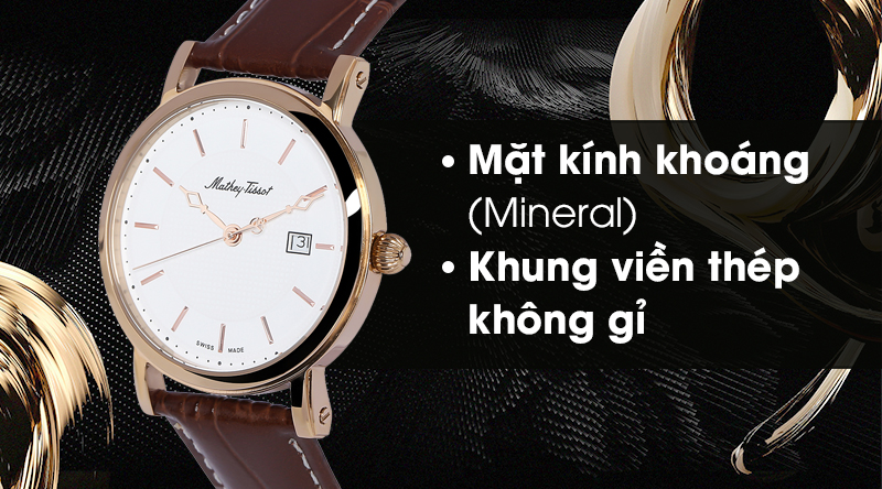 - Mặt kính của chiếc đồng hồ Mathey Tissot này bền bỉ và có độ trong suốt cao, dễ dàng được đánh bóng khi trầy xước nhẹ.
