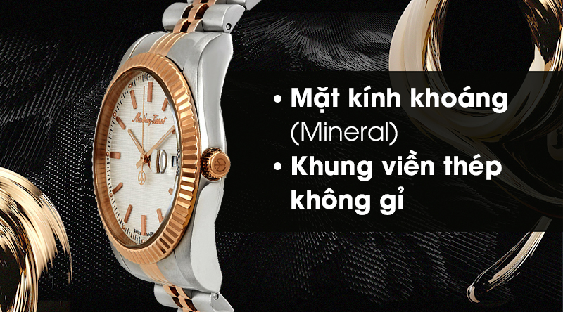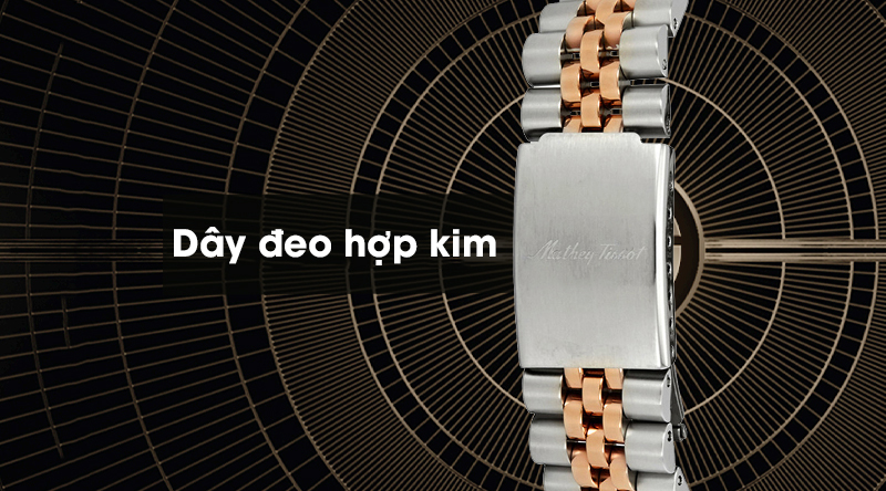 - Khung viền của chiếc đồng hồ Mathey Tissot nam này cứng cáp, chống ăn mòn tốt, hạn chứ hư hỏng khi có tác động ngoại lực.