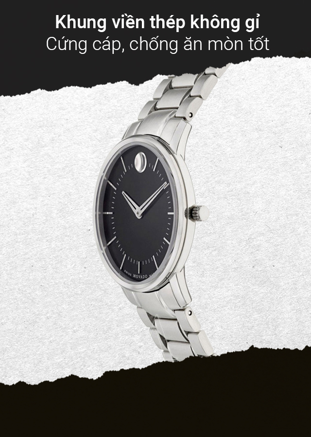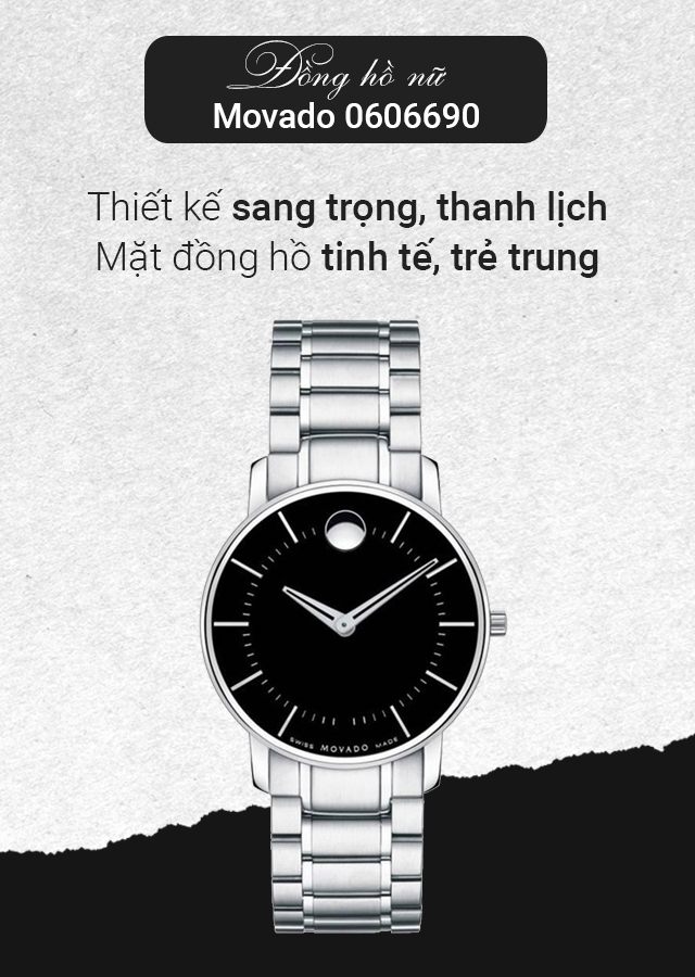 - Movado có hai dòng chính là đồng hồ cơ tự động và đồng hồ Quartz, thiết kế đơn giản, nhẹ nhàng nhưng cũng không kém phần sang trọng, hiện đại, phù hợp với mọi giới tính. Nét chấm phá của thiết kế nhà Movado chính là chấm tròn được đính đá ở vị trí 12 giờ đem đến sự độc đáo, thú vị cho chiếc đồng hồ.