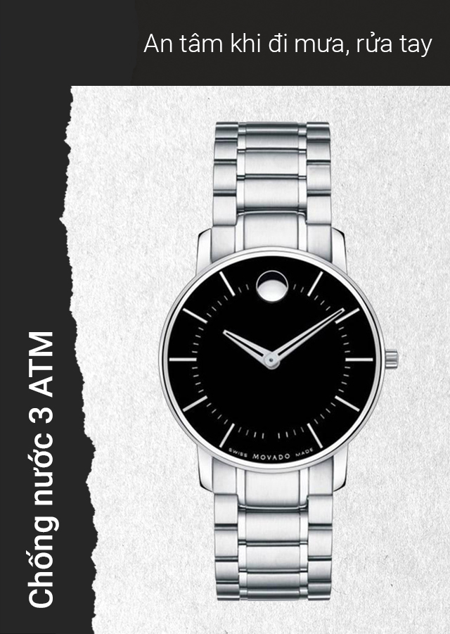 - Độ chống nước 3 ATM: Thoải mái đeo chiếc đồng hồ Movado này khi đi mưa hay rửa tay, không nên mang khi tắm, bơi lội