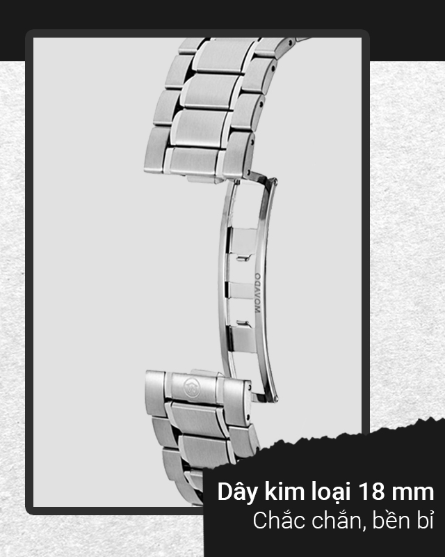 - Dây đeo kim loại cùng khung viền thép không gỉ có độ bền cao, chống va đập tốt, chịu được điều kiện thời tiết khắc nghiệt