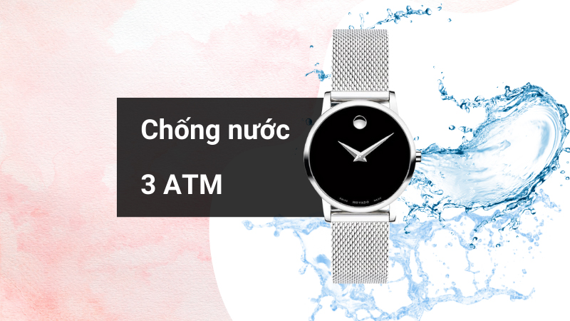- Hoàn toàn an tâm đeo khi đi mưa và rửa tay với hệ số chống nước 3 ATM, để bảo vệ tuổi thọ đồng hồ nữ lâu dài thì không nên đeo trên cổ tay khi tắm, bơi và lặn