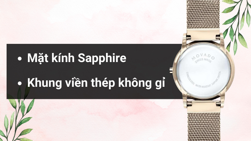 - Khung viền thép không gỉ sang trọng, chống ăn mòn tốt, kết hợp với dây đeo kim loại dạng lưới ôm cổ tay, đem đến sự thời trang, nữ tính cho phái nữ sở hữu đồng hồ
