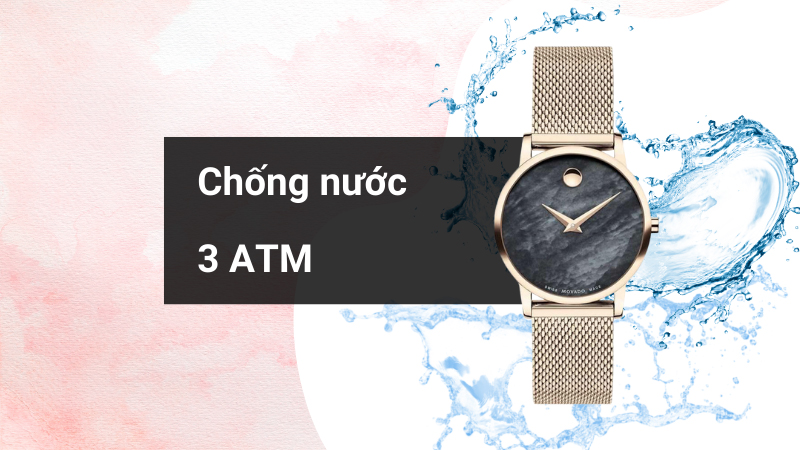 - Với hệ số chống nước 3 ATM, người dùng có thể an tâm đeo khi đi mưa và rửa tay. Tuy nhiên, không nên đeo khi tắm, bơi và lặn để bảo vệ tuổi thọ đồng hồ nữ được dài lâu