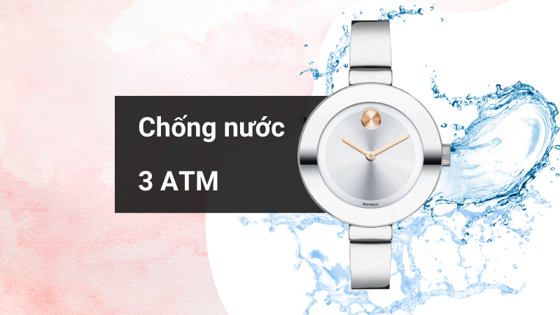 - Mẫu đồng hồ nữ được trang bị hệ số chống nước 3 ATM có thể thoải mái mang theo khi trời mưa nhỏ hoặc rửa tay nhưng hạn chế sử dụng khi đi tắm và trong lúc bơi, lặn