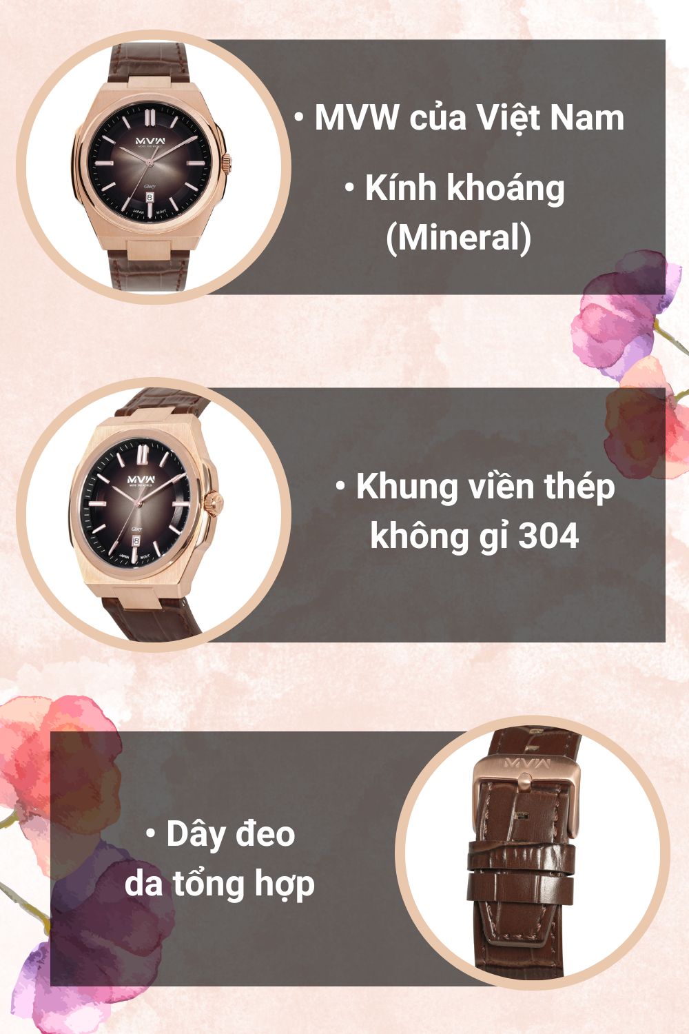 • Thương hiệu đồng hồ MVW đến từ Việt Nam đã trở thành một tên tuổi quen thuộc và được nhiều người yêu thích. Thiết kế của mẫu đồng hồ này có nhiều điểm độc đáo và phù hợp với nhiều phong cách và sở thích của người dùng.