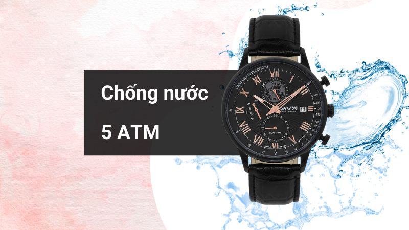 • Đồng hồ MVW 41 mm Nam ML071-02 được đảm bảo an toàn với độ chống nước 5 ATM, bạn thoải mái đeo khi tắm, rửa tay hay đi mưa, không mang khi bơi, lặn.