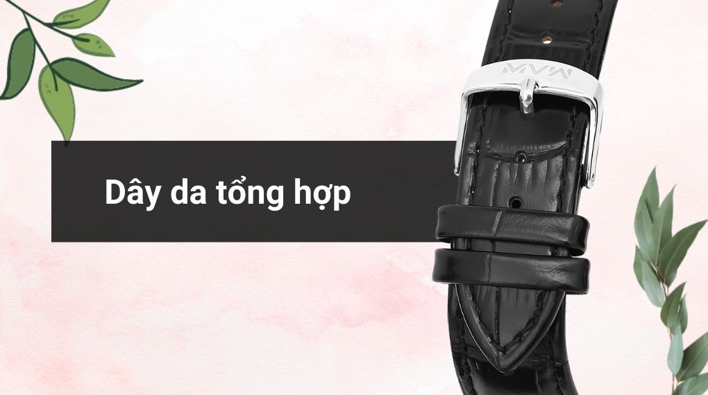 • Dây đeo của chiếc đồng hồ làm từ da tổng hợp, vừa đẹp mắt vừa dễ dàng điều chỉnh kích thước linh hoạt, giúp bạn cảm thấy thoải mái khi đeo. Ngoài ra, khung viền của đồng hồ được làm từ thép không gỉ 304, mang đến sự bền bỉ cho đồng hồ và giúp hạn chế ăn mòn do tác động từ môi trường.