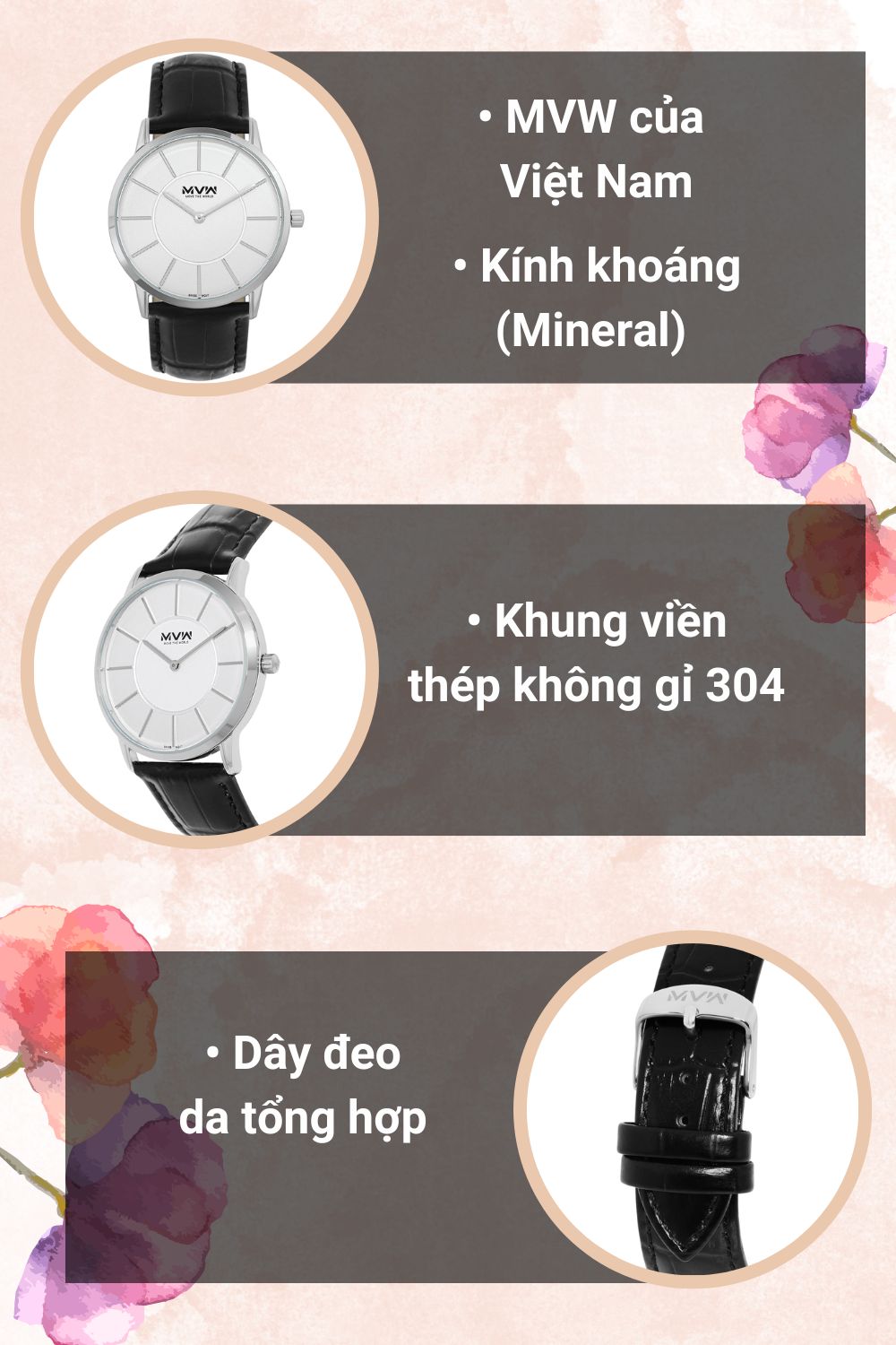 - Đồng hồ MVW với kiểu dáng, mẫu mã năng động, trẻ trung phù hợp với mọi lứa tuổi, đồng thời đồng hồ MVW còn mang vẻ đẹp sang trọng, lịch lãm.
