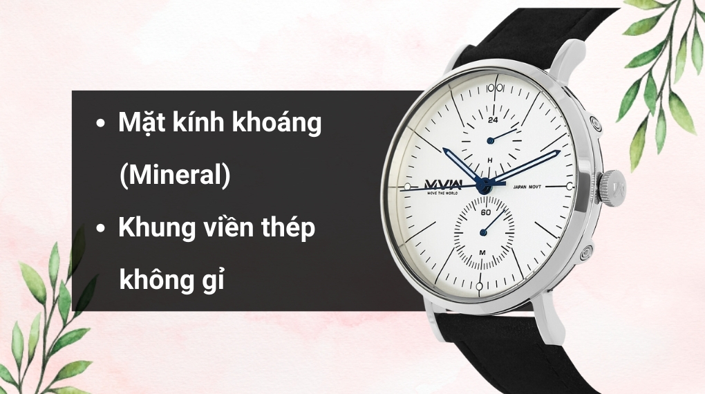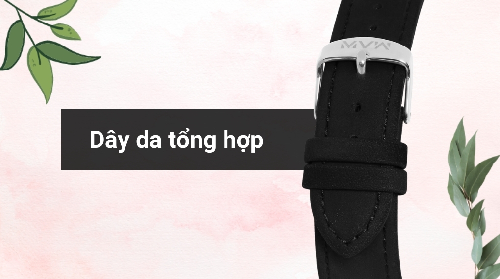 • Về chất liệu, khung viền của đồng hồ được làm từ thép không gỉ, đảm bảo độ bền và khả năng chống va đập tốt. Dây đeo sản phẩm được làm từ chất liệu da tổng hợp, có thể tùy chỉnh kích thước linh hoạt cho cổ tay sẽ mang lại cho bạn một sự thoải mái khi đeo.