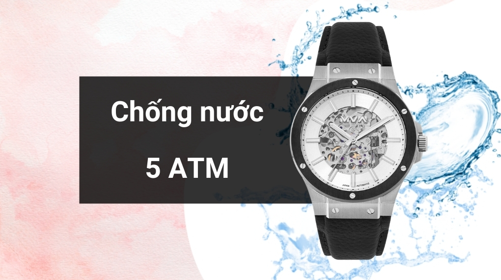 • Được làm với hệ số chống nước 5 ATM, chiếc phụ kiện này sẽ phù hợp trong các sinh hoạt hàng ngày như: đi tắm, rửa tay hoặc đi mưa. Lưu ý: không nên đeo theo khi bơi hoặc lặn để tránh gây hư hỏng đồng hồ.