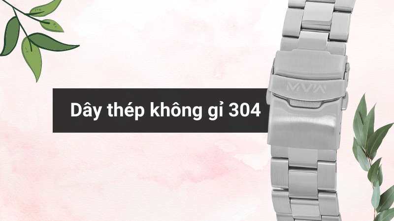 - Khung viền và dây đeo đều làm từ thép không gỉ 304 bền chắc, chịu lực tốt, dễ lau chùi khi bám bẩn.