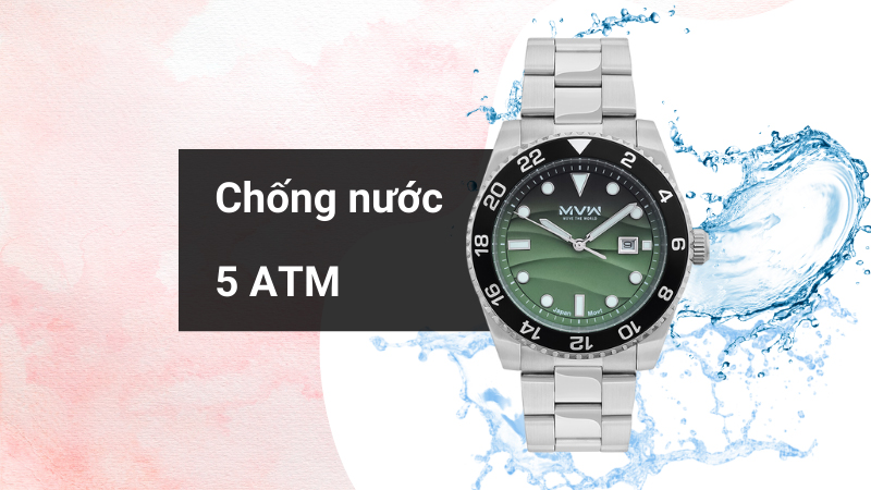 - Đồng hồ được đảm bảo an toàn với độ chống nước 5 ATM, bạn thoải mái đeo khi tắm, rửa tay hay đi mưa, không mang khi bơi, lặn.