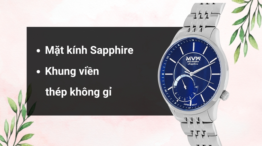 • Đồng hồ MVW 41 mm Nam MS095-01 một sản phẩm có thiết kế thanh lịch và nho nhã, với mặt đồng hồ như một hồ nước tĩnh lặng được soi rọi bởi ánh trăng, không chỉ thể hiện sự dịu dàng mà còn tôn lên được sự tinh tế của người dùng khi đeo. Đây sẽ là một mảnh ghép phù hợp cho các chàng yêu thích sự trang nhã mà sang trọng trong phong cách.