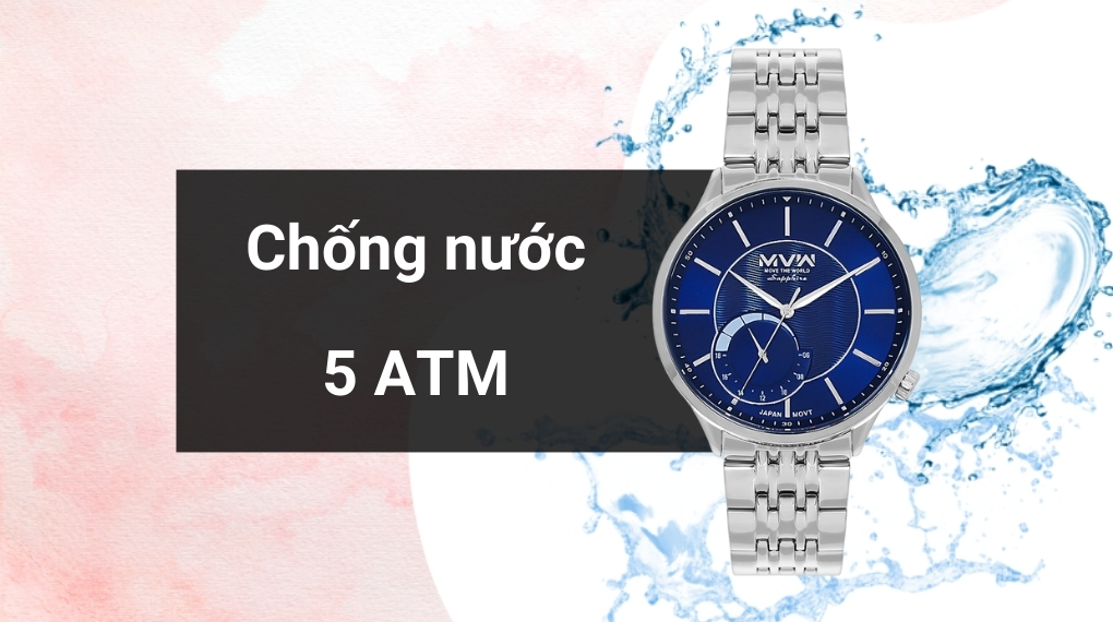 • Với sự tận tâm và thấu hiểu của hãng trước các nhu cầu hàng ngày của người dùng, hãng đã cho làm sản phẩm này với mức chống nước ổn 5 ATM, hỗ trợ người dùng tiết kiệm thời gian và an tâm trong các sinh hoạt hàng ngày như rửa tay, đi tắm hoặc đi mưa. Tuy nhiên, không nên đeo theo đồng hồ khi bơi hoặc lặn.