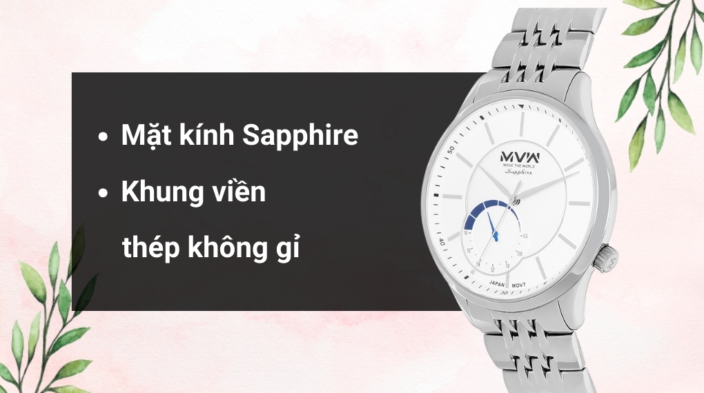 • Sở hữu kích thước đường kính mặt phổ thông 41 mm, đồng hồ MVW có thể phù hợp với nhiều khung cổ tay khác nhau, sẽ giúp cho các bạn nam dù là cổ tay nhỏ, vừa hay khá lớn đều có thể dễ dàng sử dụng phù hợp. Mặt kính sản phẩm được làm từ kính Sapphire bền bỉ, chống trầy, có thể chịu được các tác động nhẹ và giúp nâng cao tính thẩm mỹ của sản phẩm nhờ vào độ trong suốt tuyệt vời mà chất liệu mang lại.
